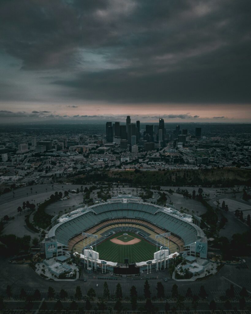 Dodger Stadium in Los Angeles is the legendary home of the Dodgers and fits 56000 fans. A historic and iconic MLB venue.