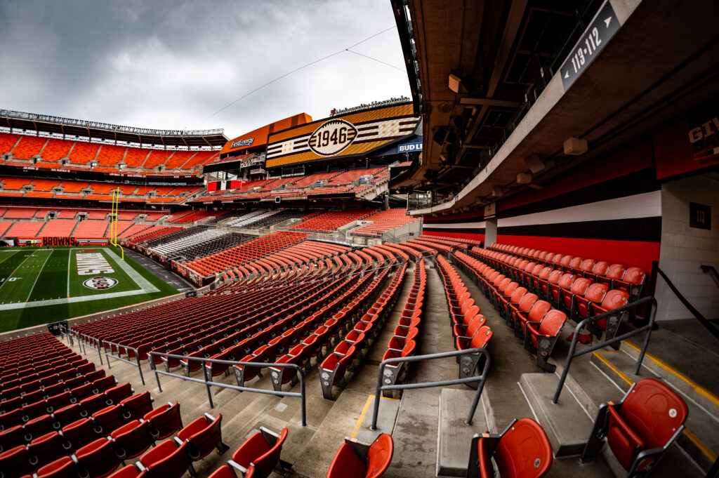 Huntington Bank Field in Cleveland is where the Browns play, with a capacity of 67895. A historic NFL venue in United States.