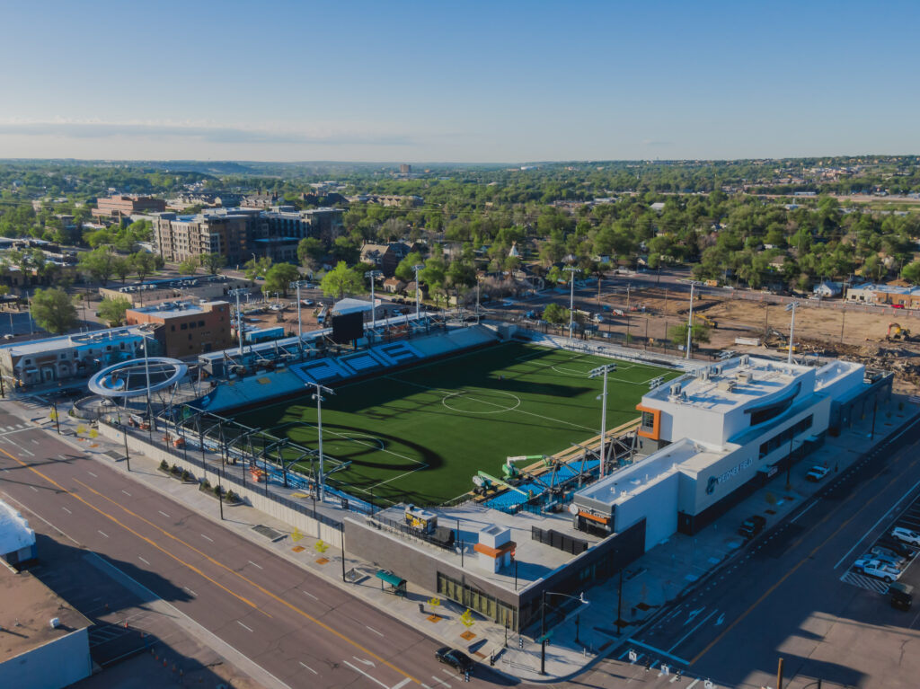 Colorado Springs Switchbacks FC plays at Weidner Field a modern stadium in the Rocky Mountains